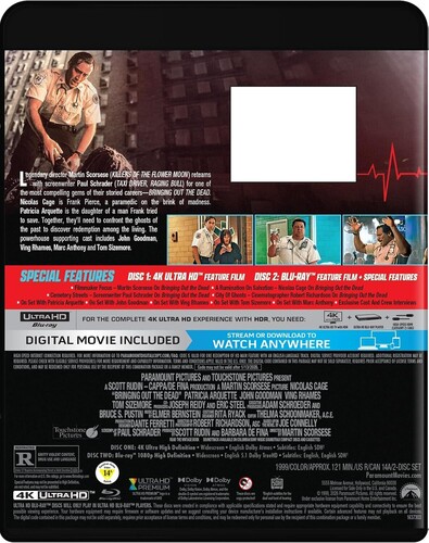 Returning to the ominous New York streets they first explored in "Taxi Driver," director Martin Scorsese and scripter Paul Schrader offer a compelling, emotional look at the life-and-death dealings of an ambulance crew. Nicolas Cage is burned-out veteran paramedic Frank Pierce, haunted by several recent cases he failed to save, who finds solace with ex-junkie Mary Burke (Patricia Arquette), the daughter of a cardiac patient he rescued. John Goodman, Ving Rhames, Tom Sizemore also star. RUNTIME: 121 minutes.