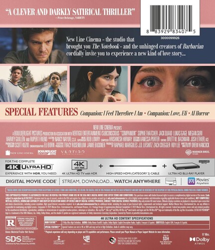New Line Cinema — the studio that brought you "The Notebook" — and the unhinged creators of "Barbarian" cordially invite you to experience a new kind of love story New Line is billing their new thriller Companion as having come from “the unhinged creators of Barbarian,” the surprise hit horror film from 2022. That movie was written and directed by Zack Cregger, who is involved in Companion — but only as a producer. Companion was actually written and directed by Drew Hancock, whose previous efforts include creating the TV series My Dead Ex and writing for Surburgatory and Blue Mountain State.