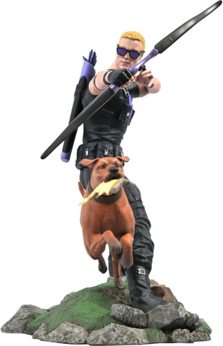 Hawkeye and his sidekick Pizza Dog spring into action in this all-new Gallery Diorama, inspired by modern Marvel Comics.