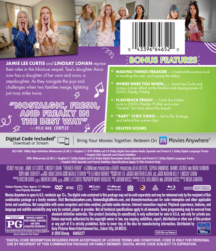 Jamie Lee Curtis and Lindsay Lohan reprise their roles in this hilarious sequel. Tess's daughter Anna now has a daughter of her own and soon, a stepdaughter. As they navigate the joys and challenges when two families merge, lightning just may strike twice. Run Time: 120 minutes Rating: PG