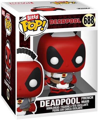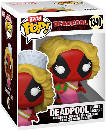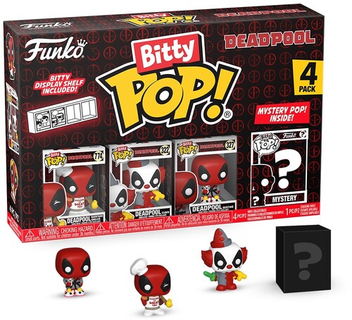 Your favorite merc with a mouth Pops! have been shrunk into Bitty Pops! Expand your Deadpool collection with this assortment of Bitty Pop! figures featuring the most iconic anti-hero around! This 4-pack includes Bitty Pop! Deadpool (Backyard Griller), Bitty Pop! Deadpool (Clown), Bitty Pop! Deadpool (Bedtime), and a mystery Bitty Pop! figure. The possible mystery Bitty Pops! are Rare (1/3) Deadpool (Lederhosen), Rare (1/3) Deadpool (Beauty Pageant), Hyper Rare (1/6) Deadpool (Tourist), and Hyper Rare (1/6) Deadpool (French Maid). Bitty Pops! are packaged in hard acrylic cases with detachable bottom lids. Detachable bottom lids double as acrylic bases, to which the Bitty Pop! figures are adhered. Sort and arrange your Bitty Pops! with the included display case! Acrylic display cases are stackable and hold four Bitty Pop! figures each. Vinyl collectibles are approximately 0.9-inches tall. Four figures per single package purchase.