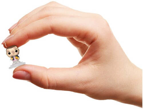 Your favorite Stranger Things Pops! have been shrunk into Bitty Pops! Expand your collection with this assortment of Bitty Pop! figures featuring your most beloved heroes and monsters as miniaturized figures! This 4-pack includes Bitty Pop! Eleven with Eggos, Bitty Pop! Mike, Bitty Pop! Jonathan, and a mystery Bitty Pop! figure. The possible mystery Bitty Pops! are Hyper Rare (1/6) Upside Down Barb, Hyper Rare (1/6) Eleven Underwater, Rare (1/3) Upside Down Will, and Rare (1/3) Eleven with Eggos and Wig. Bitty Pops! are packaged in hard acrylic cases with detachable bottom lids. Detachable bottom lids double as acrylic bases, to which the Bitty Pop! figures are adhered. Sort and arrange your Bitty Pops! with the included display case! Acrylic display cases are stackable and hold four Bitty Pop! figures each. Vinyl figures are approximately 0.9-inches tall. Four figures per single package purchase. Warning: Choking Hazard. Collectibles are small. Not for children under the age of 3 years old. Item selection is random, as each piece is in blind packaging. We cannot accept requests for specific items. You may receive duplicate figures.