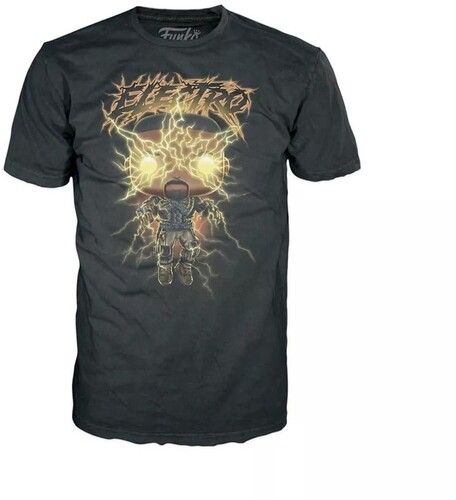 "Electrify your enemies with the Spider-Man: No Way Home Electro Pop! & Tee. On the front of this black, short-sleeved tee, Pop! Electro appears in his shocking finale suit! Lightning bolts crackle along his hands, knees, and face as he seeks out his next confrontation with Spider-Man. “Electro” is printed above his head in a jagged font, indicative of electricity. This comfy, crew-neck tee also comes with a matching, glow-in-the-dark Pop! Electro! This Pop! & Tee set is perfect for showing off your Marvel pride in your collection and on the go!