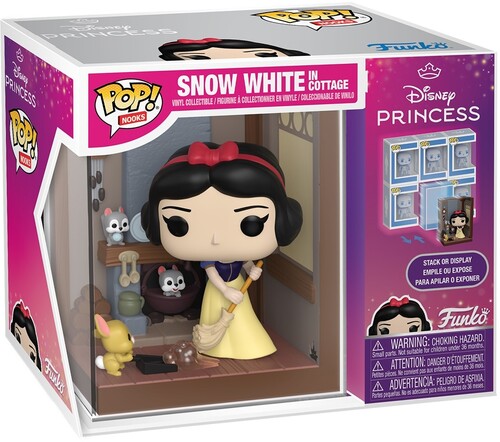 Carve out a corner of your collection for POP! Nooks Snow White in Cottage! This detailed 3D space is sure to make a stunning addition to your shelf, whether it’s nestled between your favorite books or showcased alongside the rest of your Disney’s Snow White and the Seven Dwarfs set! This collectible comes pre-packaged in an acrylic sleeve—perfect for stacking or displaying in your collection. POP! figure is adhered to the base and backdrop to ensure display integrity. Approximate dimensions of protective case: 4.5 in W x 6.3 in H x 3.5 in D (11.4 cm W x 16 cm H x 8.9 cm D).