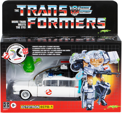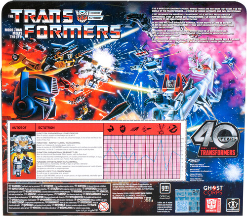RETRO-INSPIRED PACKAGING: Packaging is designed to look like the classic G1 Transformers packaging! Makes a great gift for Transformers robot fans and Ghostbusters fans!