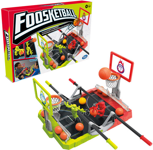 GRAB, SHOOT, SCORE: The Foosketball tabletop action game is an exciting combination of foosball and basketball. Players grab the ball, aim, and shoot it into their opponent's basket