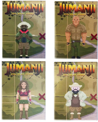 Jumanji: The Next Level collectible POPBOX! POPBOX's have licensed and exclusive collectibles, housewares and more inside of each box. Look for other boxes in our collection. This Jumanji POPBOX includes a licensed and exclusive fleece throw, two exclusive pint glasses, two exclusive coasters and four exclusive refrigerator magnets inside a unique Jumanji art box.