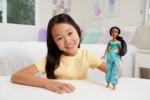 Kids can celebrate their own generosity and open-mindedness as they play out heroic adventures with this Jasmine doll inspired by the animated character in the Disney movie Aladdin.