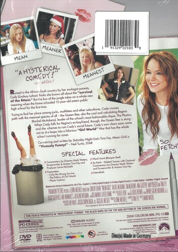 After living in Africa with her zoologist parents, Cady Heron (Lindsay Lohan) must brave the wilds of high school-where she is taken under the wing of the popular girls, The Plastics, led by the cool and cruel Regina George (Rachel McAdams). What follows is a treasure trove of sharp, witty humor that defined a generation, inspired a hit Broadway musical, and popularized countless catchphrases. Co-Starring and written by Tina Fey, and featuring Amanda Seyfried, Lacey Chabert, Lizzy Caplan, Daniel Franzese, and Amy Poehler, Mean Girls is nothing short of a pop culture phenomenon and an iconic classic.