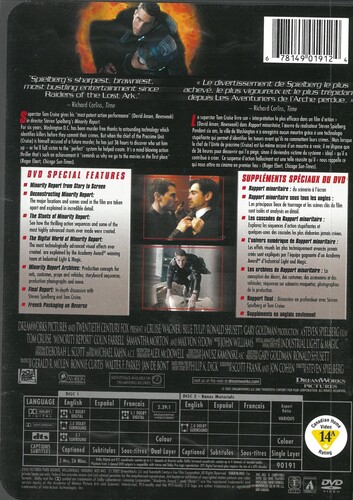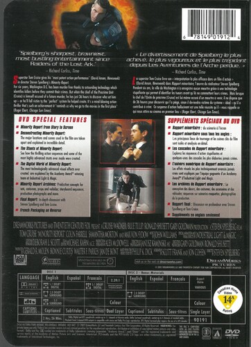 Based on a short story by the late Philip K. Dick, this science fiction-thriller reflects the writer's familiar preoccupation with themes of concealed identity and mind control. Tom Cruise stars as John Anderton, a Washington, D.C. detective in the year 2054. Anderton works for Precrime, a special unit of the police department that arrests murderers before they have committed the actual crime. Precrime bases it's work on the visions of three psychics or precogs whose prophecies of future events are never in error. When Anderton discovers that he has been identified as the future killer of a man he's never met, he is forced to become a fugitive from his own colleagues as he tries to uncover the mystery of the victim-to-be's identity. When he kidnaps Agatha (Samantha Morton), one of the precogs, he begins to formulate a theory about a possible frame-up from within his own department. Directed by Steven Spielberg, who hired a team of futurists to devise the film's numerous technologically advanced gadgets, Minority Report co-stars Colin Farrell, Max von Sydow, and Neal McDonough.