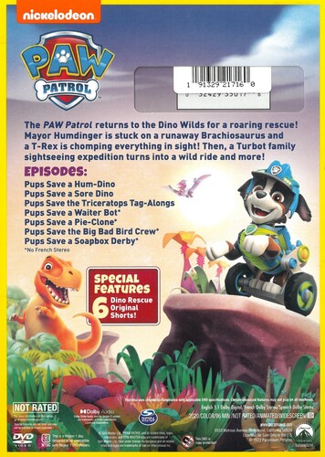 The PAW Patrol returns to the Dino Wilds for a roaring rescue! Mayor Humdinger is stuck on a runaway Brachiosaurus and a T-Rex is chomping everything in sight! Then, a Turbot family sightseeing expedition turns into a wild ride and more!