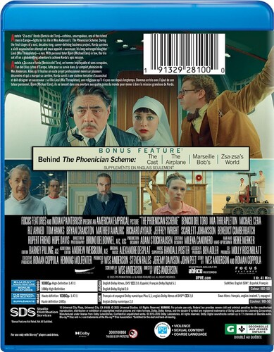 PHOENICIAN SCHEME - Blu-ray - Following several attempts on his life, wealthy European tycoon Zsa-zsa Korda (Benicio del Toro) decides it's time to name a successor. Of his 10 children, Korda selects Liesl (Mia Threapleton)-his only daughter, who also happens to be a nun. Liesl gets a crash course in her father's business dealings when she accompanies him on a kooky around-the-world adventure. Wes Anderson's expectedly quirky comedic thriller co-stars Michael Cera, Riz Ahmed, Tom Hanks, Scarlett Johansson, and Bill Murray. RUNTIME: 101 min.