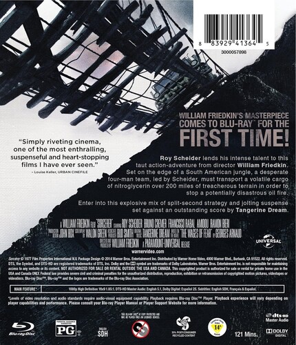 Four unfortunate men from different parts of the globe agree to risk their lives transporting gallons of nitroglycerin across dangerous Latin American jungle. Directed by William Friedkin and starring Roy Scheider, Bruno Cremer, Francisco Rabal, and Amidou. Run time : 2 hours and 1 minute