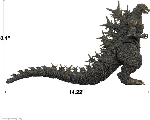 Based on the same 3D models used for the 2023 film Godzilla Minus One and approved by director Takashi Yamazaki for authenticity, this highly-articulated Toho ULTIMATES! Godzilla Minus One figure measures over 8” tall and 14” long, features intricate sculpt and premium paint detailing, and comes with an interchangeable roaring head- all of which give it a visceral sense of power and danger!