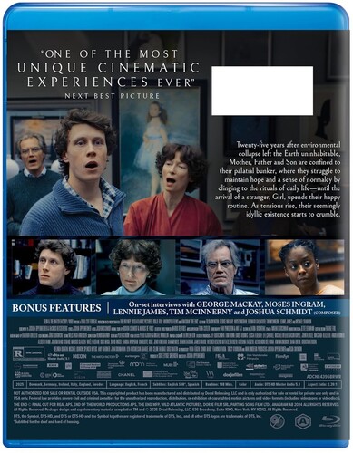 Twenty-five years after environmental collapse left the Earth uninhabitable, Mother, Father, and Son are confined to their palatial bunker, where they struggle to maintain hope and a sense of normalcy by clinging to their rituals of daily life – until the arrival of a stranger, Girl, upends their happy routine. As tensions rise, their seemingly idyllic existence starts to crumble.