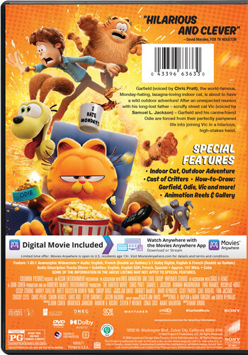 Garfield (voiced by Chris Pratt), the world-famous, Monday-hating, lasagna-loving indoor cat, is about to have a wild outdoor adventure! After an unexpected reunion with his long-lost father - scruffy street cat Vic (voiced by Samuel L. Jackson) - Garfield and his canine friend Odie are forced from their perfectly pampered life into joining Vic in a hilarious, high-stakes heist.