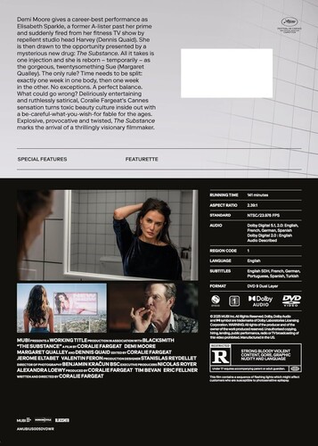 She is then drawn to the opportunity presented by a mysterious new drug: THE SUBSTANCE. All it takes is one injection and she is reborn – temporarily – as the gorgeous, twentysomething Sue (Margaret Qualley).