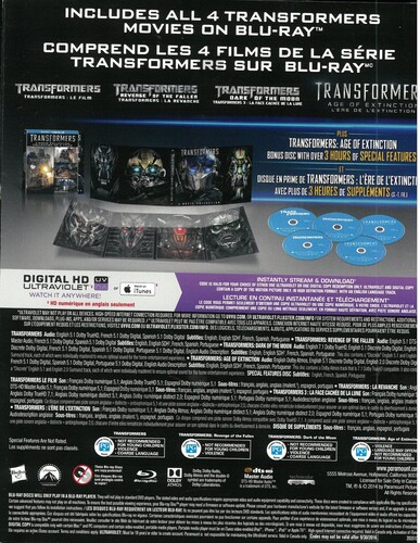 Join the Autobots and their human allies as they defend the world from the evil Decepticons in this ultimate Transformers movie collection! This must-have set includes all five of director Michael Bay's thrilling, action-packed film adventures, starring Shia LaBeouf, Josh Duhamel, Tyrese Gibson, Megan Fox, Mark Wahlberg, John Turturro, Rachael Taylor, Stanley Tucci and more.