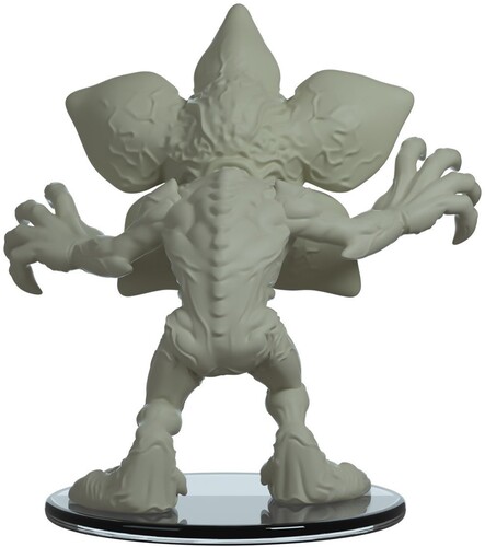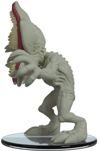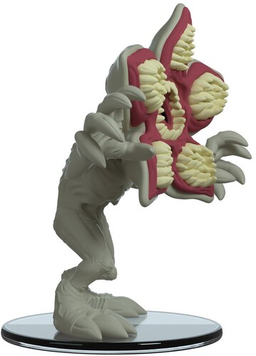 The Demogorgon stands at 4.3 inches, ready whenever and wherever to find its next prey. It is in a sort of hunched over pose, its entire mouth exposed to bare the countless number of sharp teeth that this creature has. Its mouth opens in the shape that resembles a flower, but it is definitely something that you do not want to get close to. The molding is sculpted to really show the bumps and nerves that are all over it's body. It stands with both legs bent and both arms stretched outwards in front of it, ready to attack.